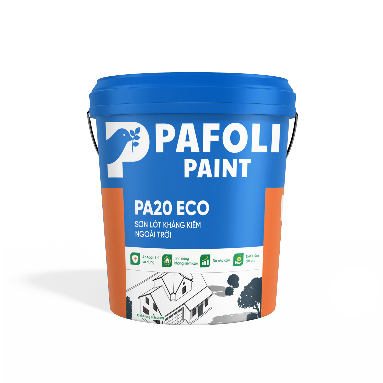 Bột bả cao cấp ngoài trời PAMISơn lót kháng kiềm ngoài trời PA20 ECOSơn phủ ngoài trời PAFOLI