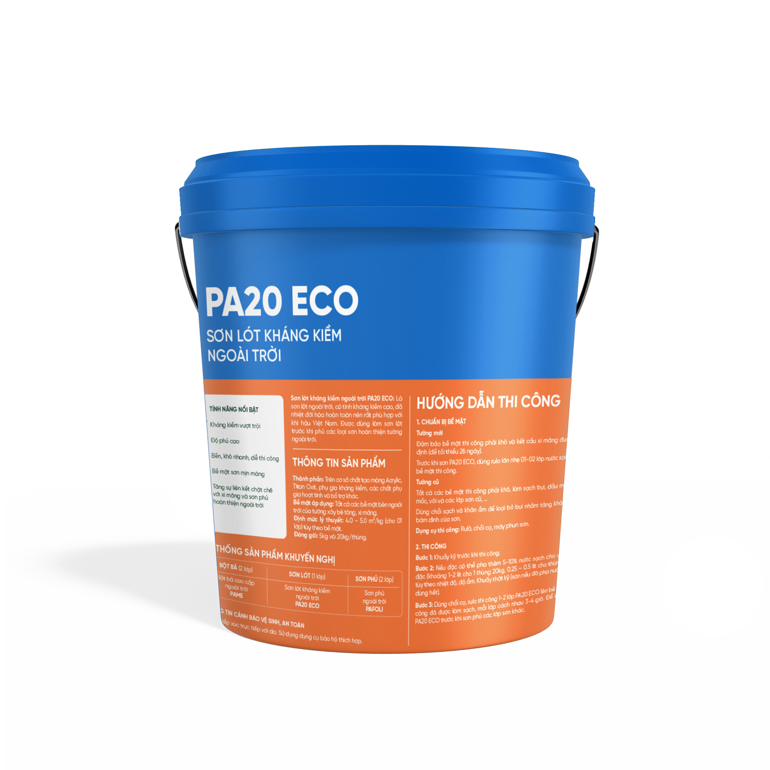 Sơn lót kháng kiềm ngoài trời PA20 ECO: Là sơn lót ngoài trời, có tính kháng kiềm cao, đã nhiệt đới hóa hoàn toàn nên rất phù hợp với khí hậu Việt Nam. Được dùng làm sơn lót trước khi phủ các loại sơn hoàn thiện tường ngoài trời.